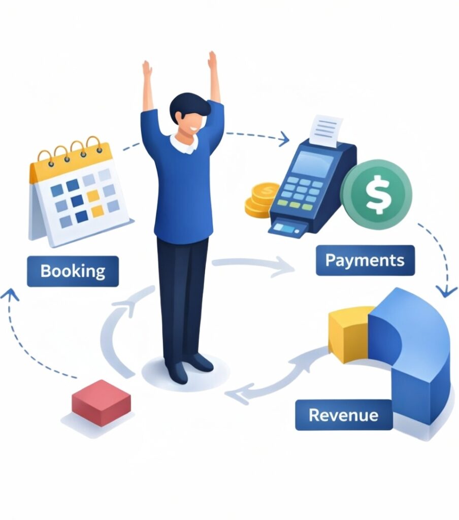 Bookings and payments are processed digitally, with automated revenue distribution and reporting, removing inefficiencies and maximising earning potential.